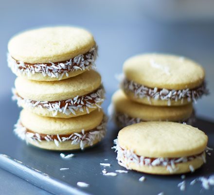 These melt-in-the-mouth shortbread-like cookies originate from South America and are full of dulce de leche and rolled in desiccated coconut