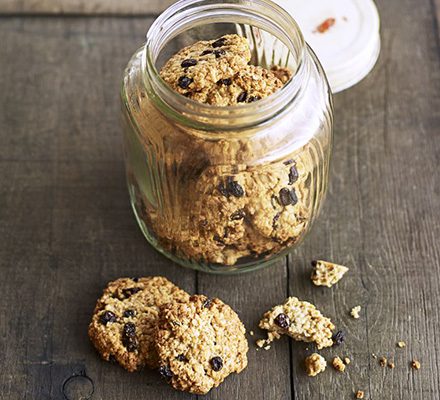 Fill the biscuit tin with these rustic cookies. Soaking the raisins offers a lift to the feel and stops them from burning throughout cooking