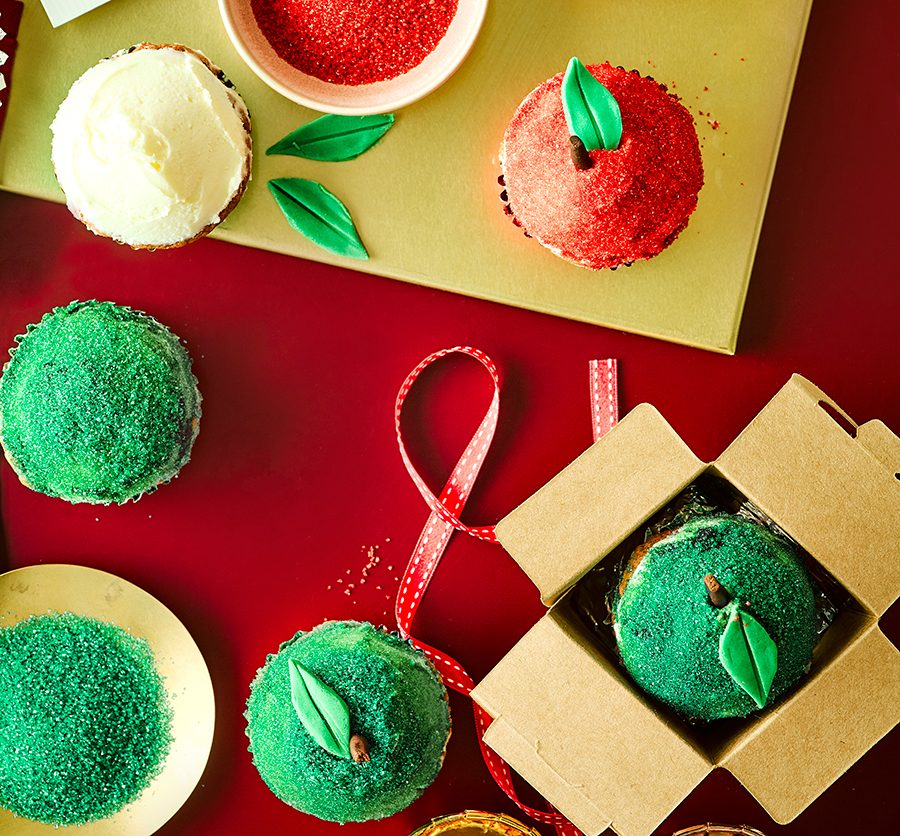 Warmth the oven to 180C/160C fan/gasoline 4. Line six holes of a 12-hole cupcake tin with crimson instances, and the opposite six with inexperienced. For the cake batter, beat the butter and each sugars with an electrical whisk till mild and fluffy. Slowly combine within the eggs, then fold within the flour, baking powder, grated apple and spices till totally integrated.